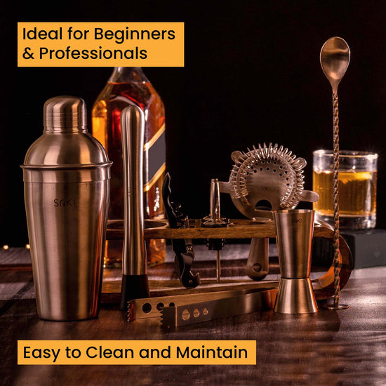 A: This set is designed to cater to both beginners and experienced bartenders alike. Its ergonomic design and comprehensive range of tools make it easy for beginners to get started, while its high-quality construction and functionality meet the needs of seasoned mixologists.