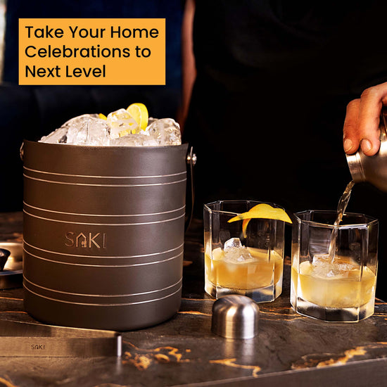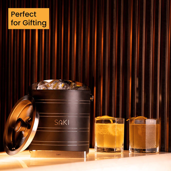 "Chill & Sip" Gift Set is sure to give you a drinking experience like no other. With the perfect trio of a gunmetal ice bucket, two exquisite crystal whiskey glasses, and sturdy stainless steel tongs. The ice bucket keeps your ice cool for hours, ensuring your drinks stay refreshingly chilled.