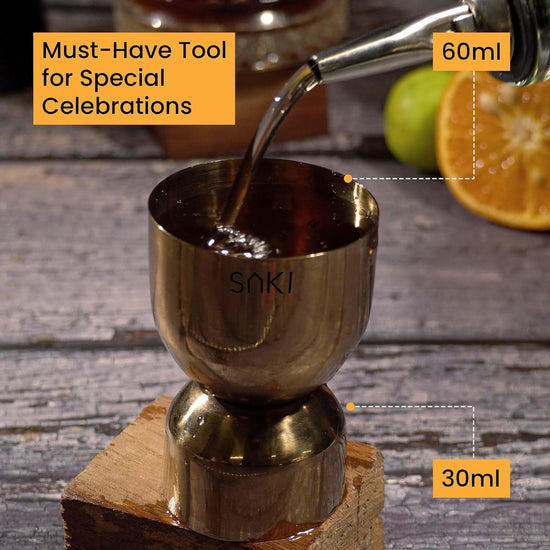 Make your favorite cocktails at home with our SAKI Peg Measurer Jigger! Why go to the bar, when you can bring the bar with you? Savor every taste with style and elegance with this durable, corrosion-free jigger. Elevate your home bartending game with its long-lasting performance and style.