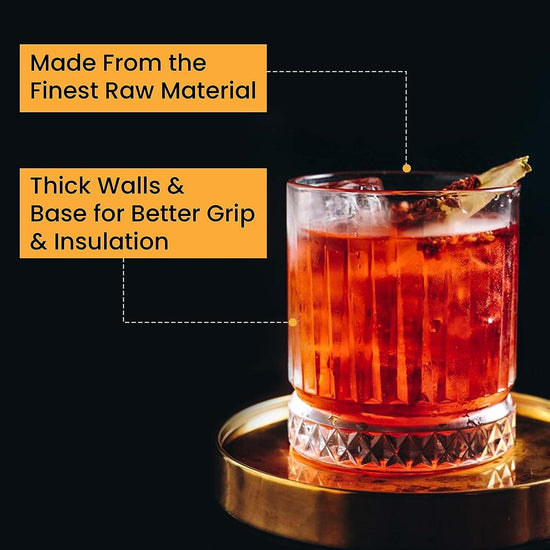 -These whiskey glasses rock a seriously sturdy base, giving you that satisfying grip and ensuring your drink stays put. Plus, their strong base ensures your drink stays the perfect temperature and makes mixing cocktails effortless.