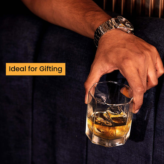 The crystal glasses offer a luxurious feel, while the gunmetal ice bucket keeps your drinks chilled to perfection. With the included stainless steel tongs, serving ice has never been easier. Whether you're enjoying a quiet evening or hosting a gathering, this set adds a touch of sophistication and class to every sip. Cheers to unforgettable moments with SAKI!
